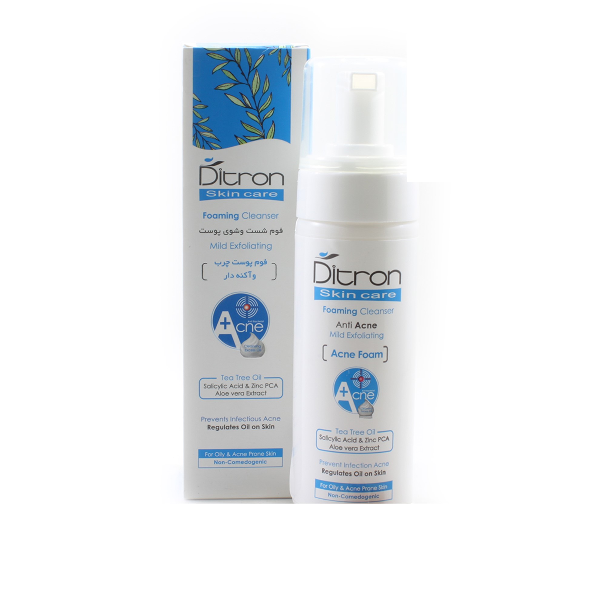 در فرمولاسیون فوم ضد آکنه دیترون از ترکیباتی چون روغن درخت چای، عصاره اوا اورسی، عصاره بابونه و عصاره زنبق استفاده شده است. خواص ضد التهاب، ضد قارچ و باکتری دارد. استفاده از این لوسیون در سن بلوغ به پیشگیری از بروز آکنه کمک میکند.