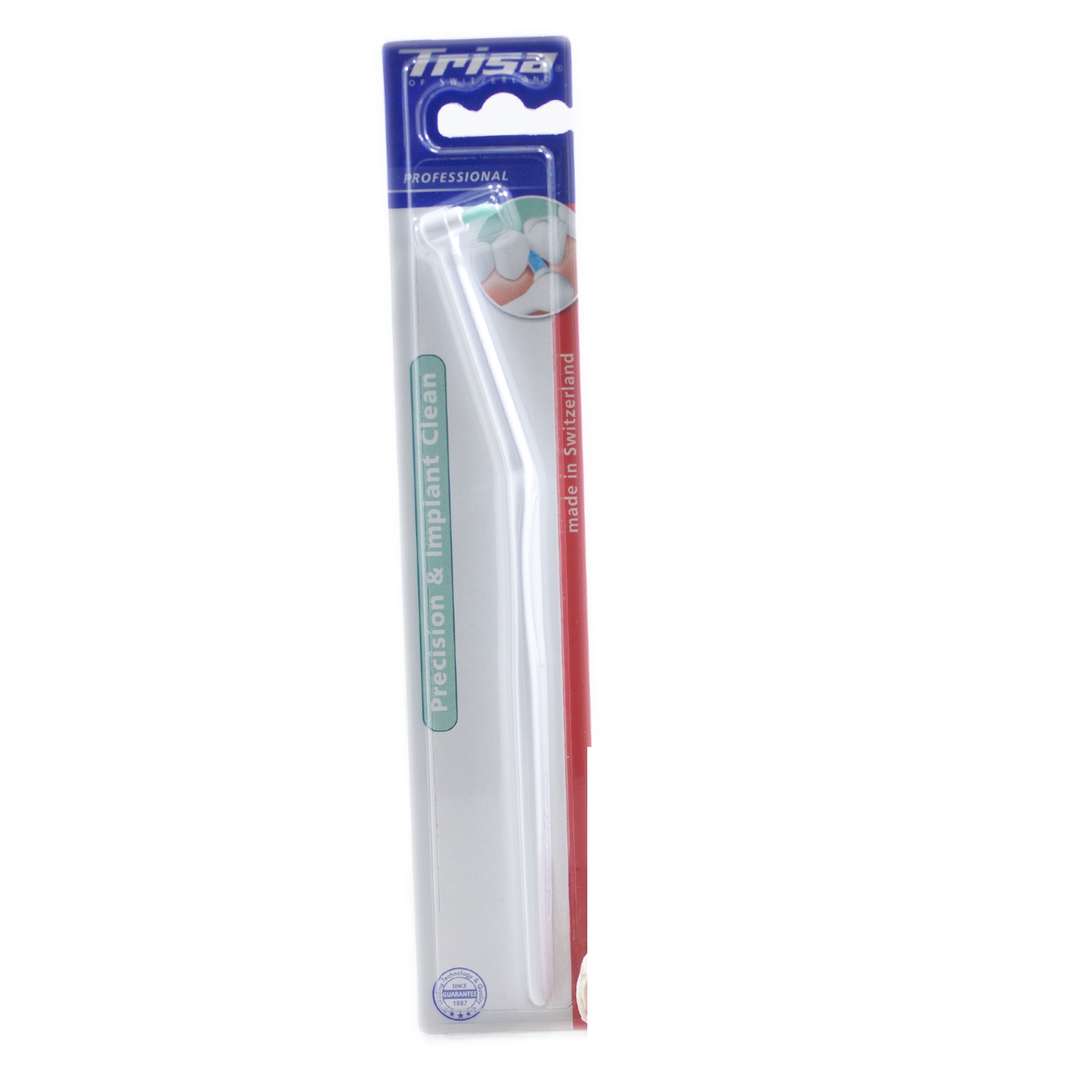 مسواک پرسیژن اند ایمپلنت کلین تریسا یک محصول مناسب برای دندان های ایمپلنت شده است. این مسواک با الیاف فشره و طراحی خاص خود باعث می شود به دورترین و غیر قابل دسترس ترین دندان ها دسترسی داشته و آنها را کاملا تمیز کند . برای پاکسازی اطراف دندان های ایمپلنت شده و زیر پروتز از این مسواک استفاده می شود . این مسواک را ما بین پین ها ایمپلنت قرار داده و با حرکات رفت و برگشت بین پین ها را تمیز می کنیم.