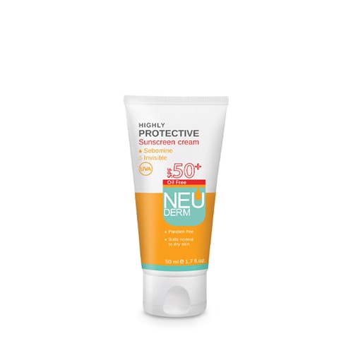 کرم ضد آفتاب SPF50 فاقدچربی بی رنگ نئودرم محافظ خوبی در برابر آسیب های ناشی از اشعه آفتاب میباشد.