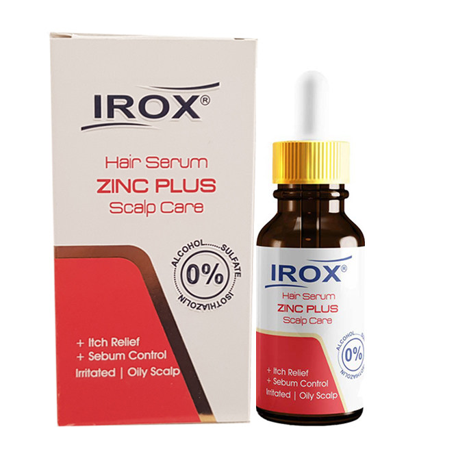 سرم موی زینک پلاس ایروکس و حاوی Zne PCA، روغن ها و عصارهای گیاهی ویتامین های E و پیش ساز ویتامین B5 سبب کاهش ترشح سبوم، تسکین التهابات و تحریکات پوست سر، کنترل شوره سر و پوسته ریزی میشود و با مهار آنزیم 5-آلفا ردوکتاز و کاهش سطح DTH ریزش فولیکول های مو حساس به DTH را کاهش میدهد. این سرم حاوی روغن ها و عصاره های خالص و طبیعی است و به راحتی در پوست سر جذب میشود.