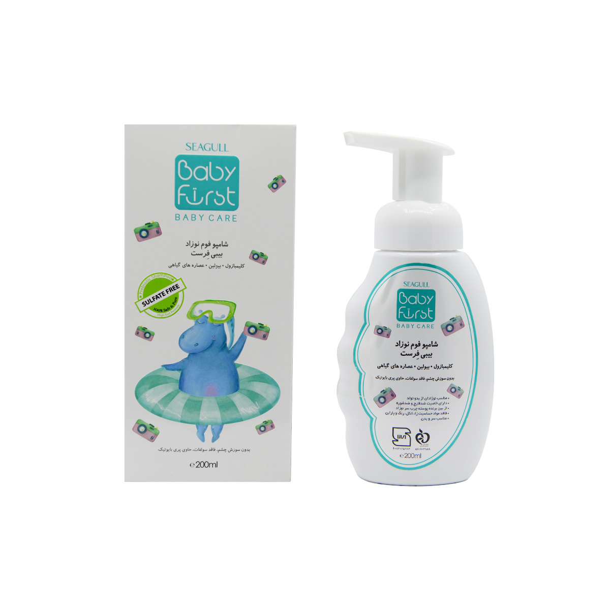 شامپو فوم نوزاد پسرانه بیبی فرست سی گل