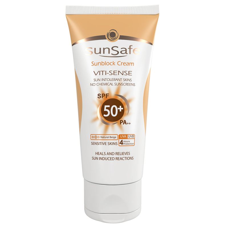 کرم ضد آفتاب +SPF50 فیزیکال مناسب پوست حساس سان سیف (بژ طبیعی)